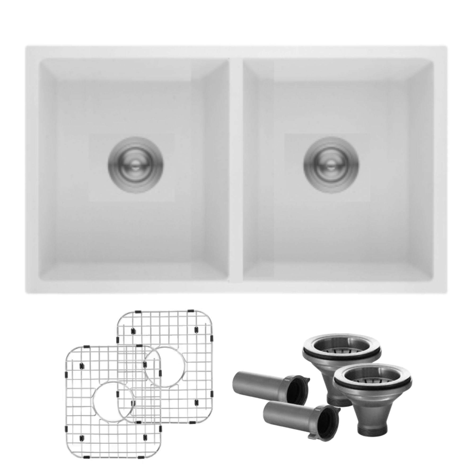 Install this beautiful 32x18 quartz undermount/topmount sink for a modern look. Heat and scratch resistant, this sink is designed to be very durable and easy to clean with its rounded corners!