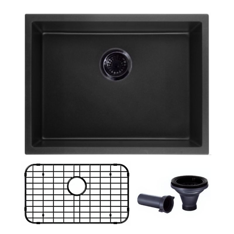 Install this beautiful 23x17 granite undermount/topmount sink for a modern look. Heat and scratch resistant, this sink is designed to be very durable and easy to clean with its rounded corners!